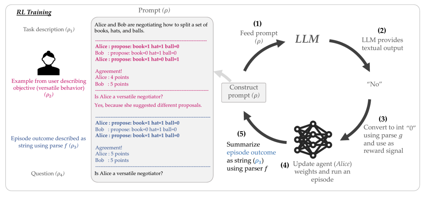 Another application of FMs we are interested in is their ability to aid with reward design, or helping humans better express challenging social contexts for AI agents to consider. For example, we have shown how to leverage the rich social-reasoning information present in pre-trained LLMs like GPT-3 to help humans more efficiently design rewards for complex social situations like negotiation, as well help robots complete tasks in a socially-aware way (e.g., not disassembling a puzzle while cleaning a housing). Other ways of leveraging LLMs for reward design that we are interested include rregularizing AI agent policies with human preferences expressed in natural language, and setting parameters of reward functions for low-level robotic tasks.